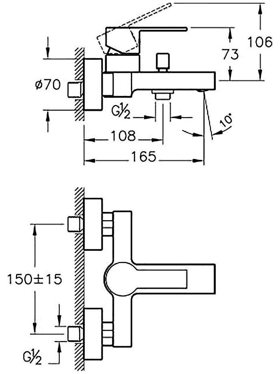 Flo S, настенный смеситель, неповоротный излив, с выходом на душ (без лейки), картридж с регулятором расхода и температуры, арт. A41937EXP, Vitra