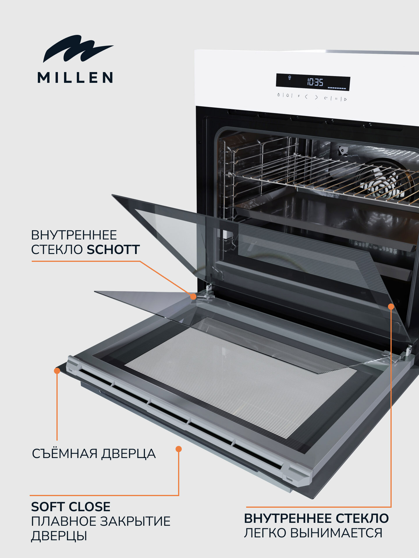 Духовой шкаф встраиваемый, электрический MILLEN MEO 603 WH, белый интересное: