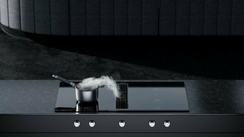 Индукционная варочная панель с вытяжкой Kuppersbusch KMI 9850.0 SR интересное: