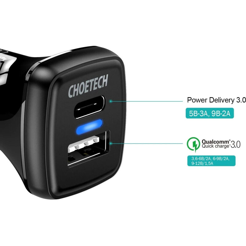 Choetech Автомобильное зарядное устройство QC 3,0 + PD 20 Вт, 38 Вт TC0005 TC0005-V3-BK