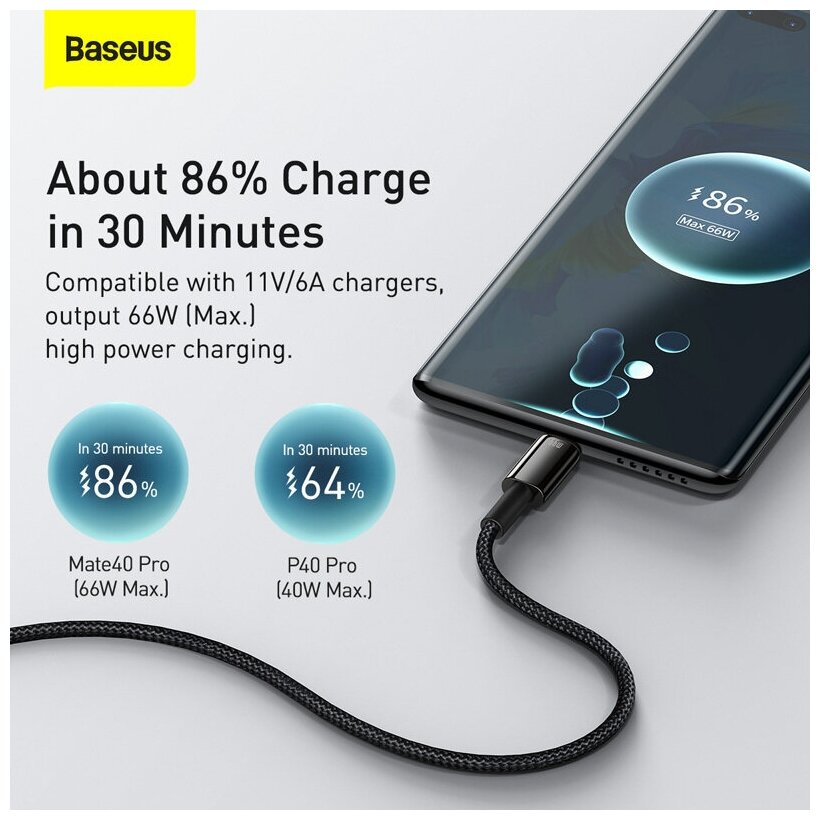 Аксессуар Baseus Tungsten Gold USB - Type-C 66W 2m Black CATWJ-C01