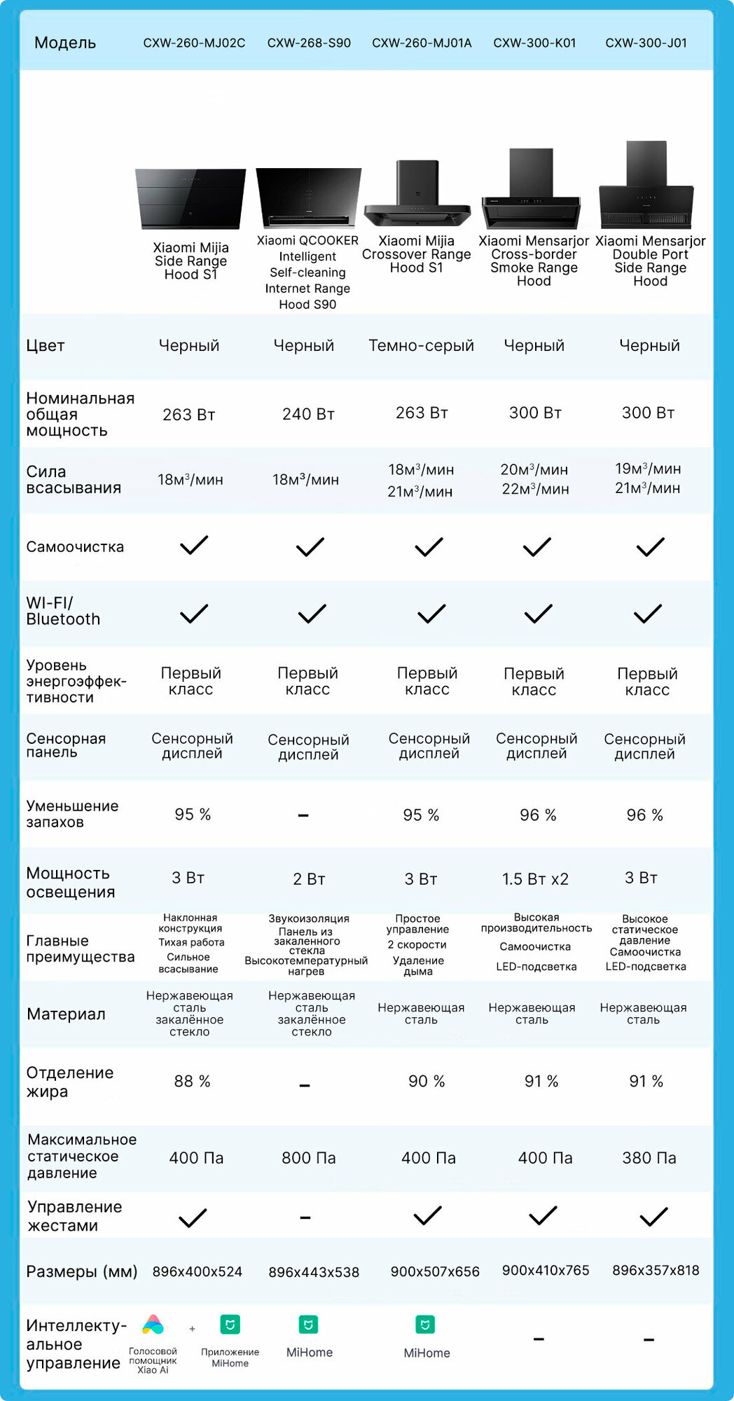 Умная вытяжка Xiaomi Mensarjor Double Port Side Range Hood (CXW-300-J01) интересное:
