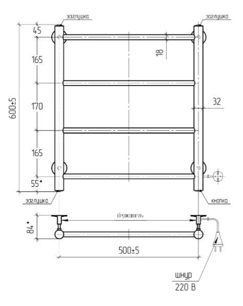 Полотенцесушитель электрический Vimarr 500х600 лесенка с нагревательным кабелем, подключение боковое, Kaskad PSK-VMRKe56BL черный матовый интересное: