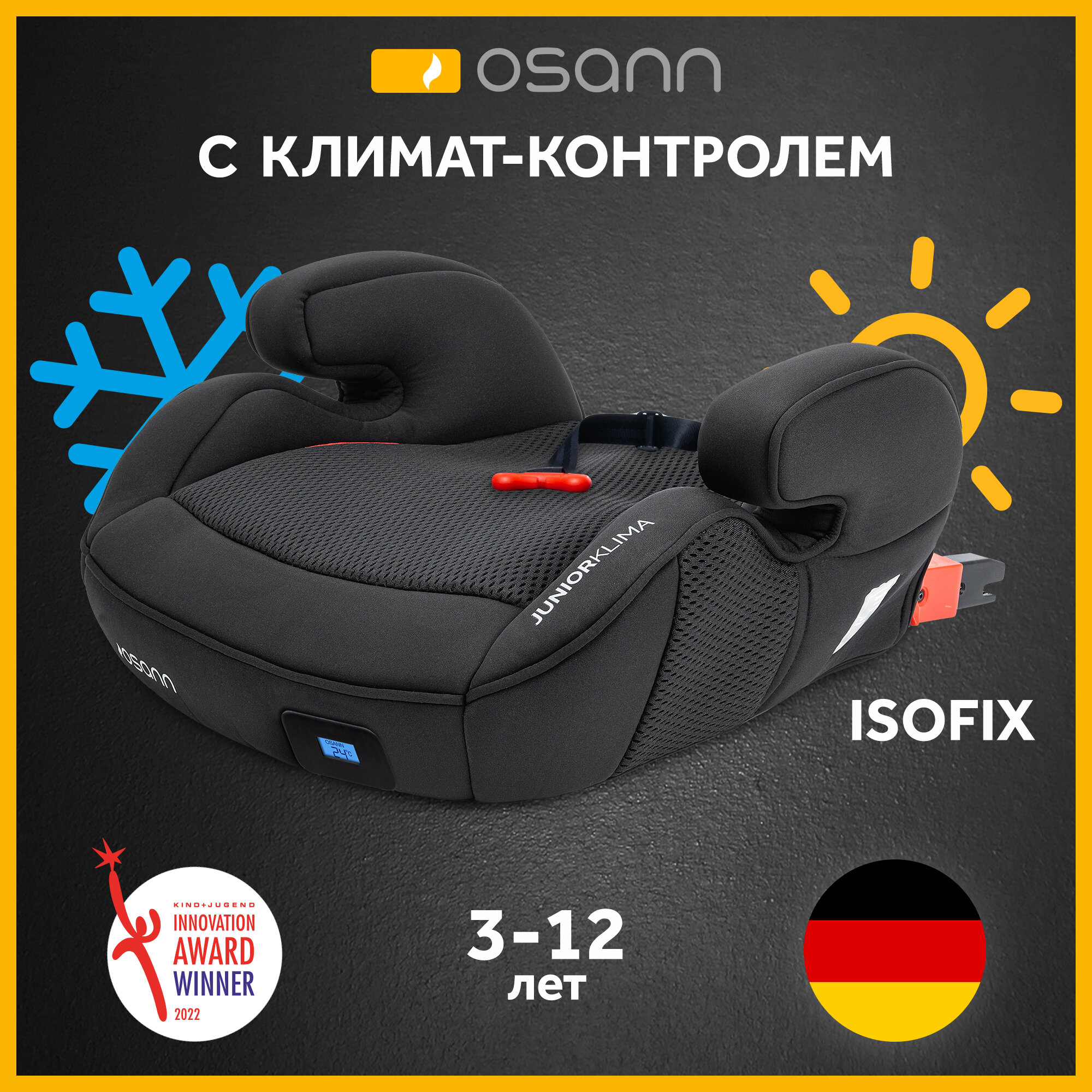 Автокресло детское Osann бустер JUNIOR Isofix Klima All Black с подогевом и охлаждением, группа 2-3, от 15 до 36 кг. интересное: