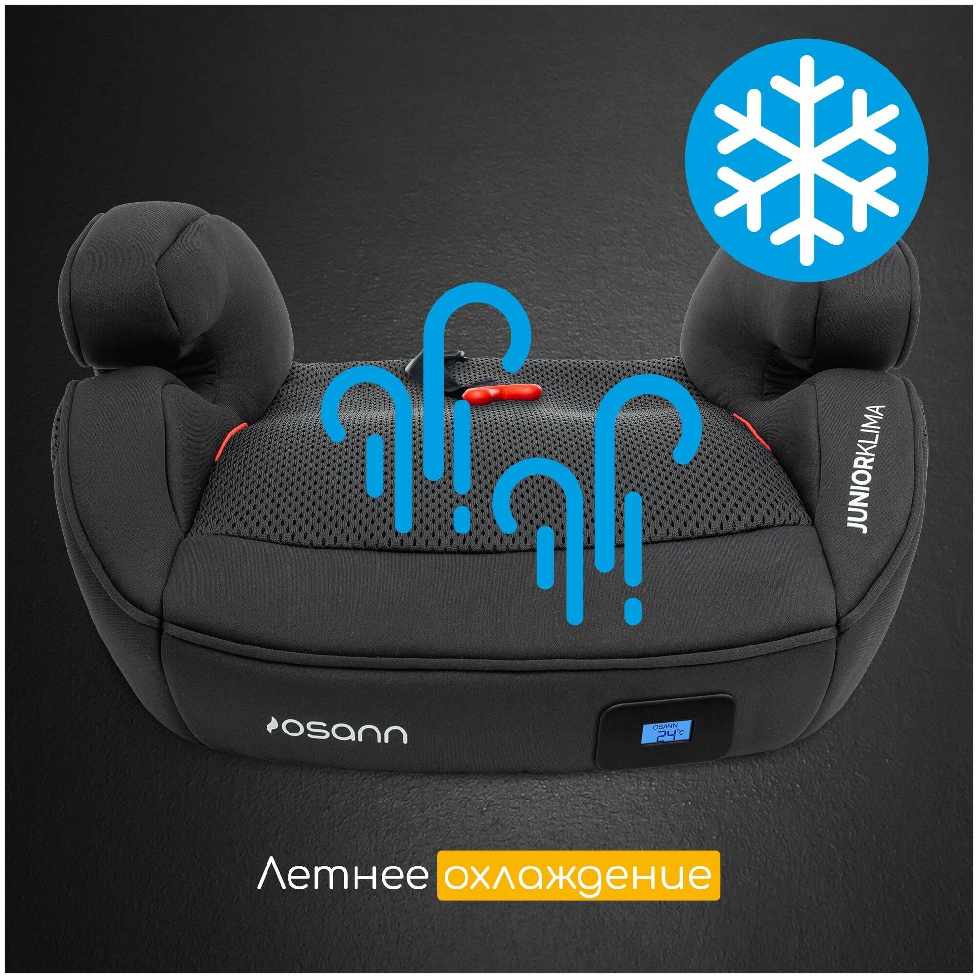 Купить Автокресло детское Osann бустер JUNIOR Isofix Klima All Black с подогевом и охлаждением, группа 2-3, от 15 до 36 кг.