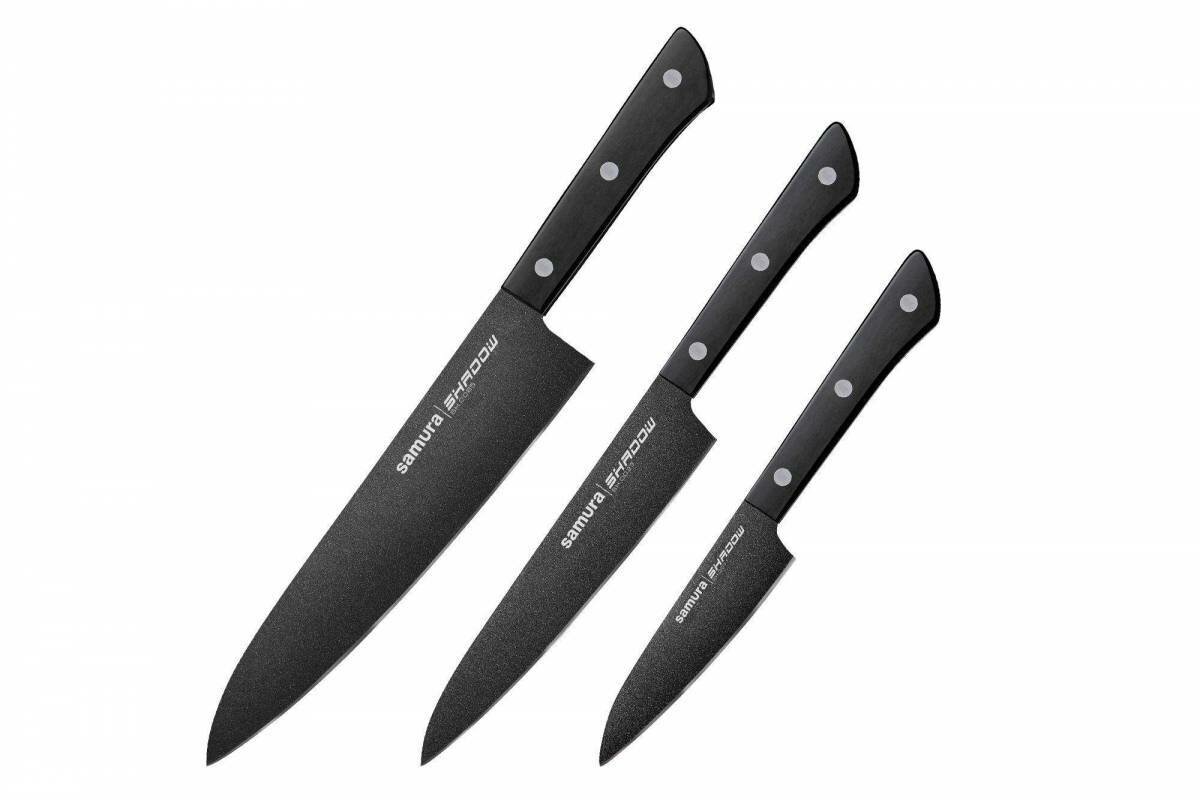 Набор из 3 ножей Samura Shadow Sh-0220/k с покрытием Black-coating, Aus-8, ABS пластик . интересное: