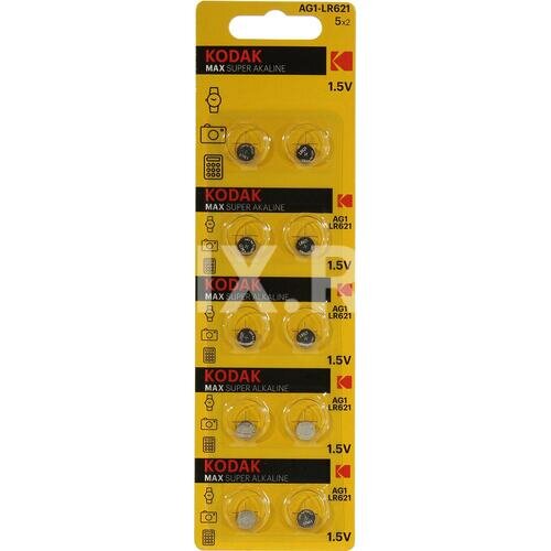 Батарейки Kodak AG1 (364) LR621 LR60 [KAG1-10] MAX Button Cell арт. Б0044706 (10 шт.)
