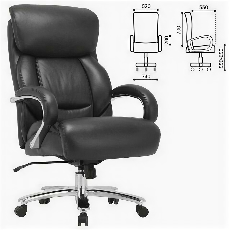 Компьютерное, офисное, удобное кресло для руководителя с подлокотниками Brabix Premium "Pride HD-100", до 250 кг, натуральная кожа, черное, 531940
