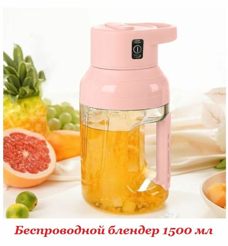 Беспроводной блендер, миксер для приготовления сока, коктейлей емкостью 1500 мл розовый интересное: