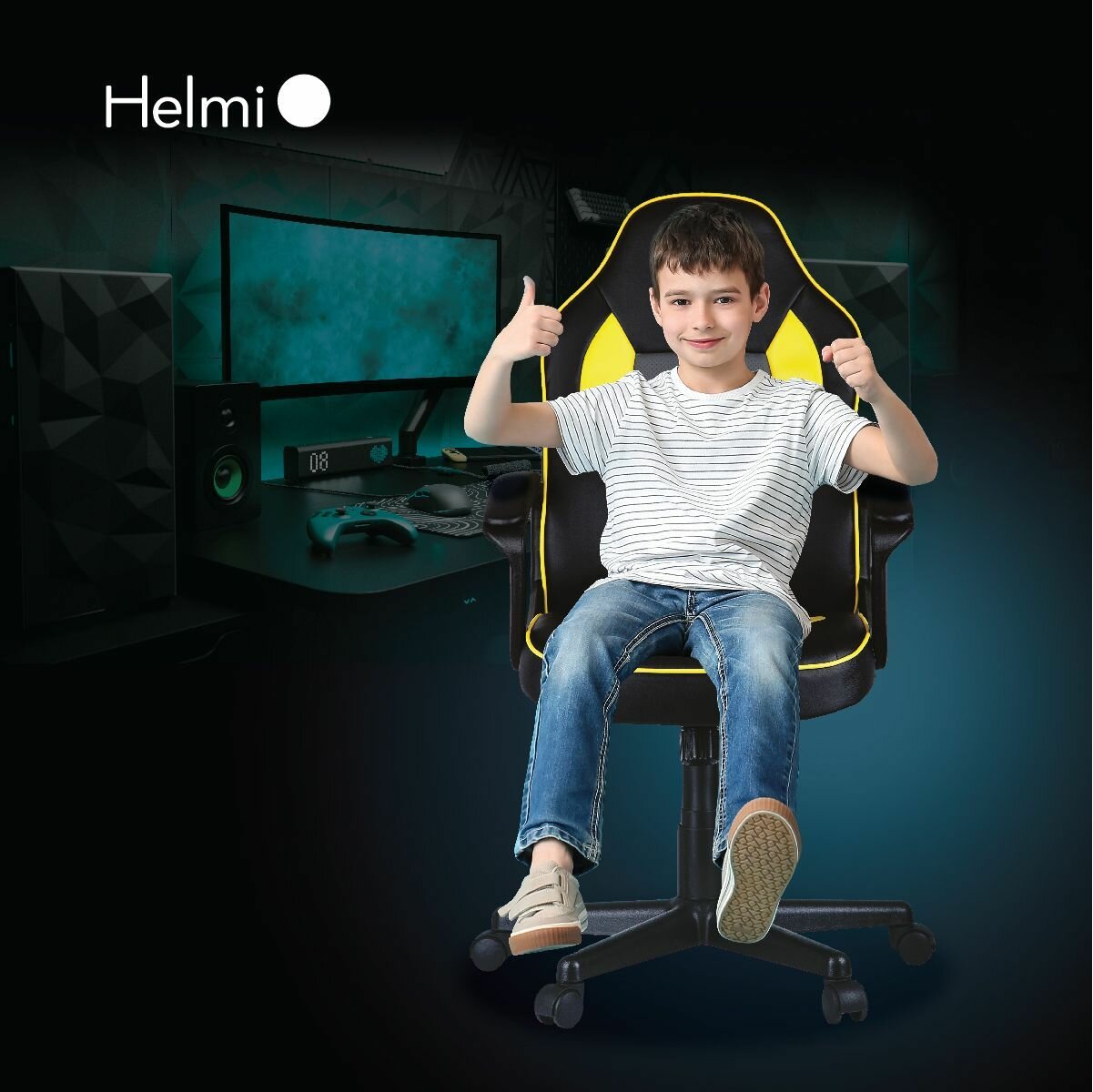 Купить Кресло игровое Helmi "Rally", экокожа черная, серая, желтая (297636)