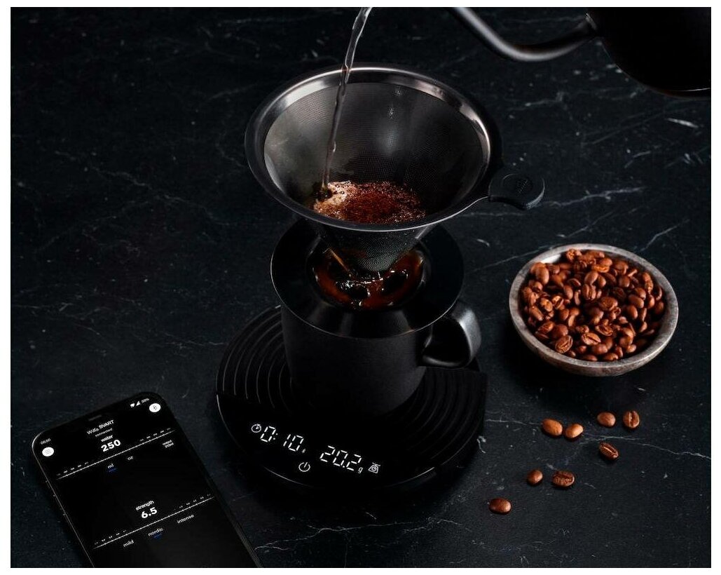 | Дополнительная информация | весы можно подключить к приложению Wilfa Svart через Bluetooth. Приложение показывает идеальное соотношение смешивания кофе и воды, вплоть до последней капли. Вы также найдете полезные советы, рекомендации и руководства по приготовлению идеального кофе. Внезапное повышение температуры может повлиять на точность весов. Поэтому мы рекомендуем использовать силиконовый коврик из комплекта, когда вы завариваете кофе на весах или взвешиваете горячую жидкость. |