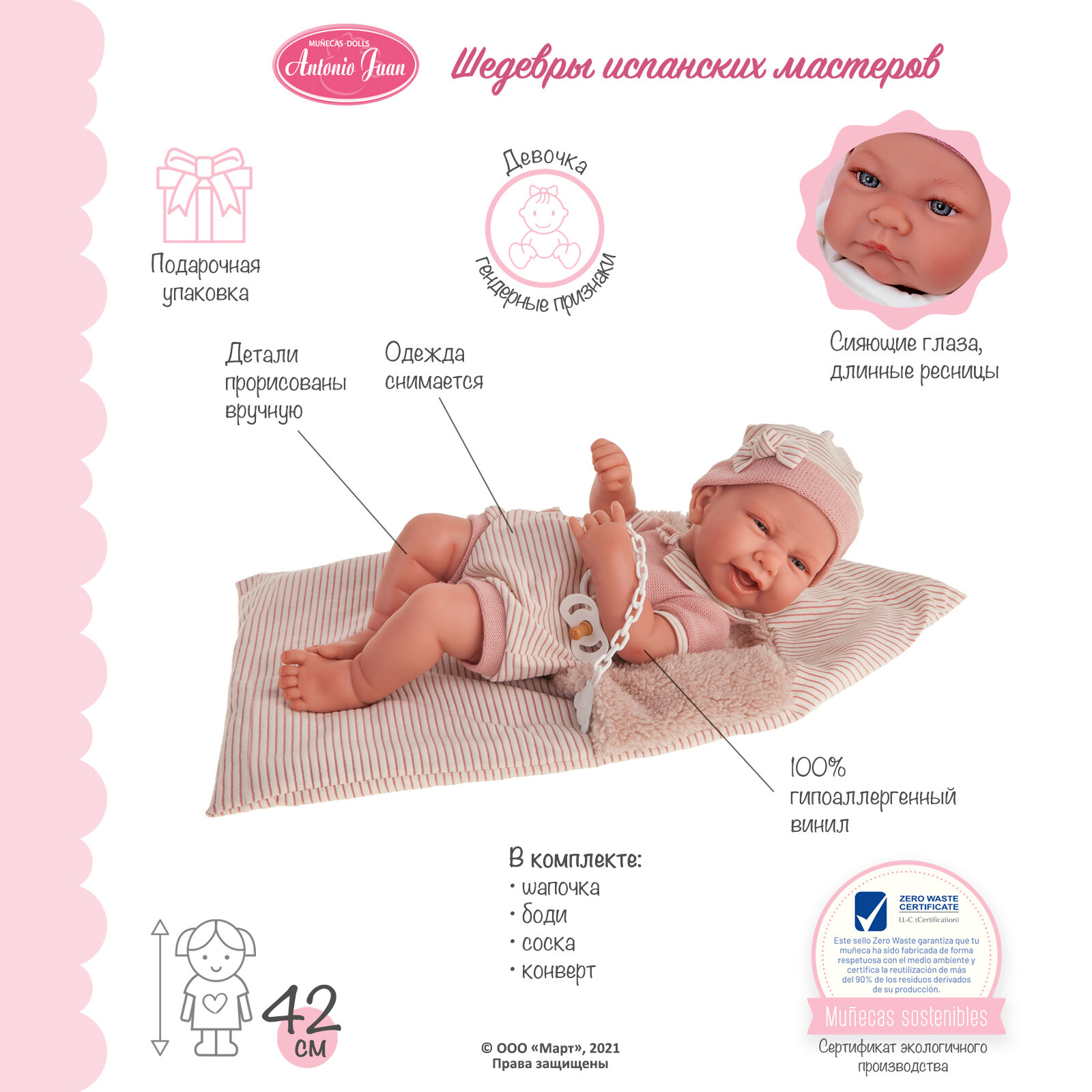 | Комплектация | кукла, шапка, боди, конверт, соска |