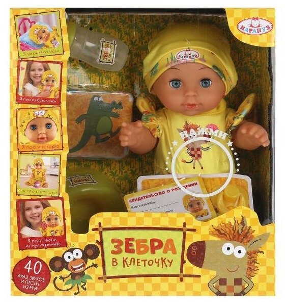 Пупс озвученный Зебра в клеточку пупс 30см, интересное: