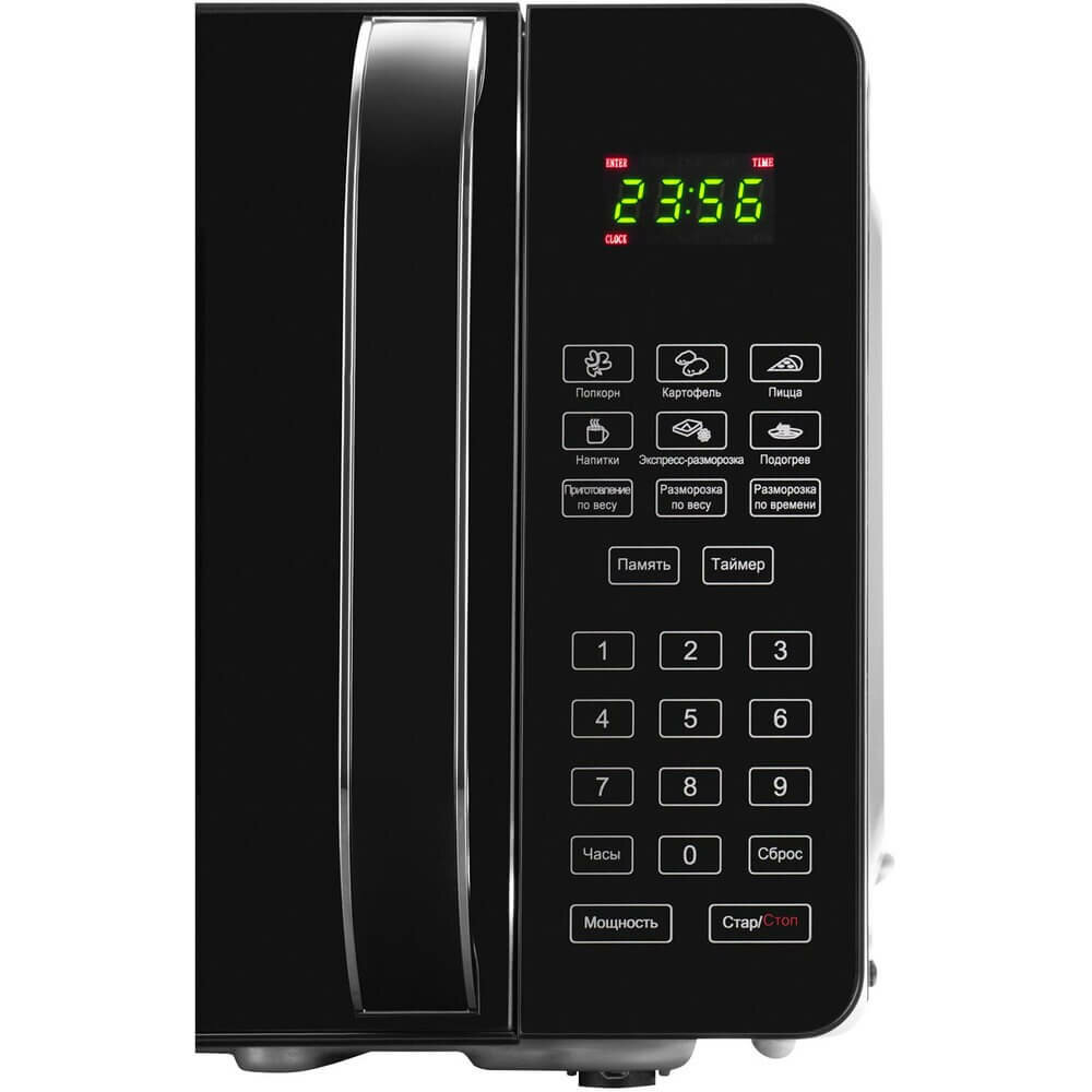 | Плюсы: | - Есть дисплей, при этом механические кнопки, что позволяет настроить время разогрева с точностью до 10 секунд. + ручка у дверцы.
