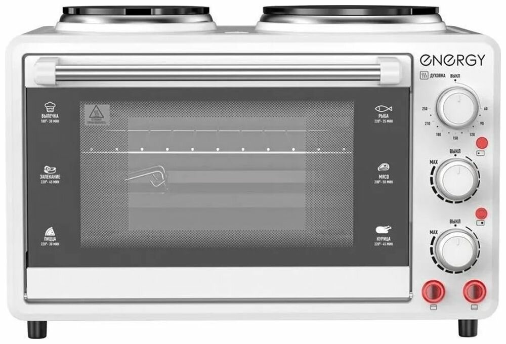 Мини-печь Energy GН-26A-W, 26 л, 1400 Вт, таймер, 2 конфорки, белая