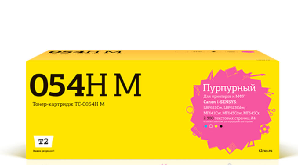 T2 Расходные материалы Cartridge 054HM Картридж TC-C054H M для Canon i-Sensys LBP621Cw LBP623Cdw MF641Cw MF643Cdw MF645Cx 2300 стр. пурпурный, с