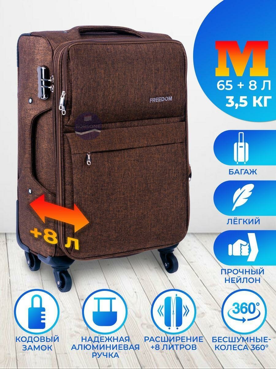 Чемодан тканевый на колесах средний размер M NEW_FREEDOM_M_BROWN