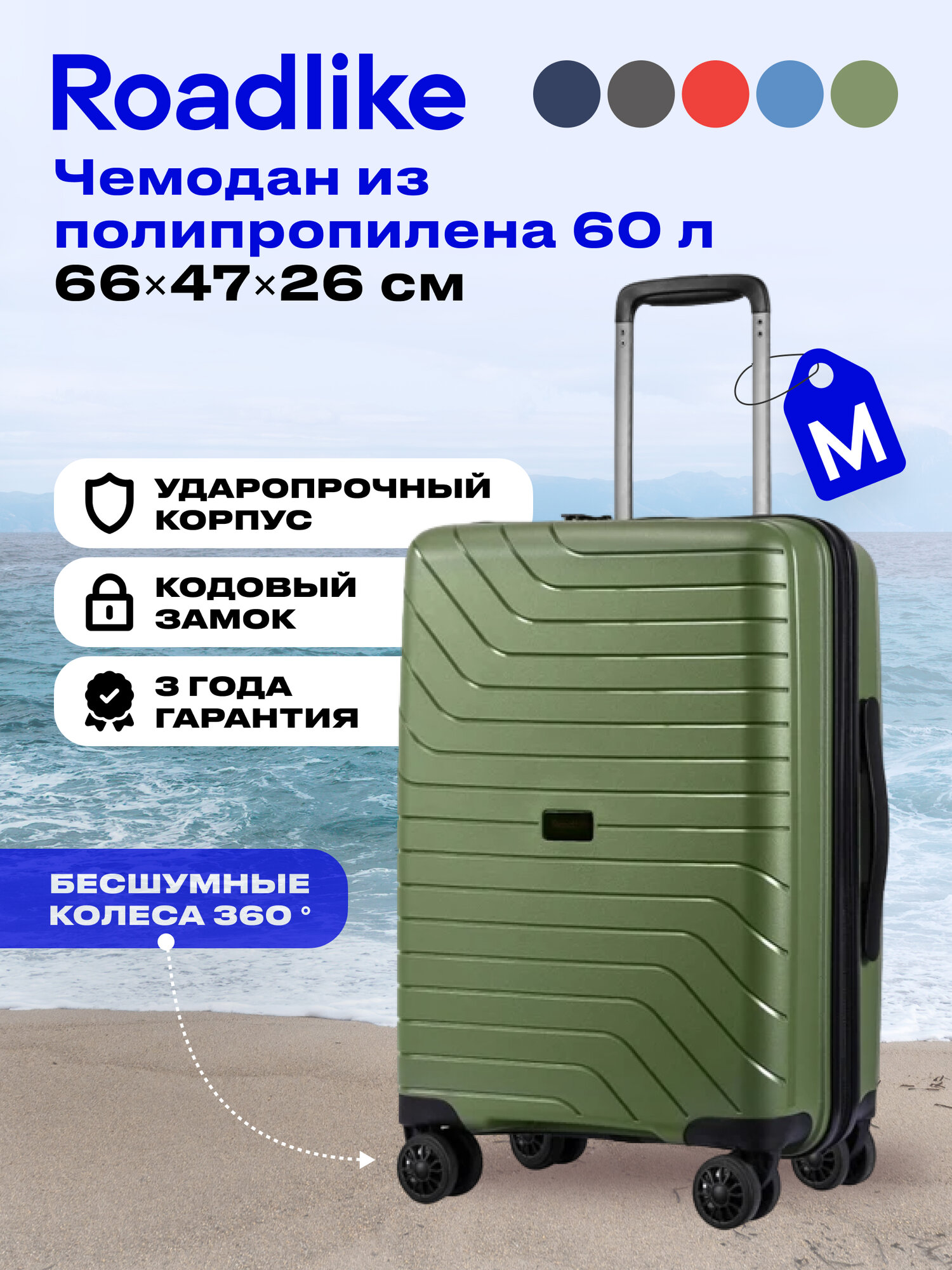 Чемодан RoadLike Way M, Зеленый .