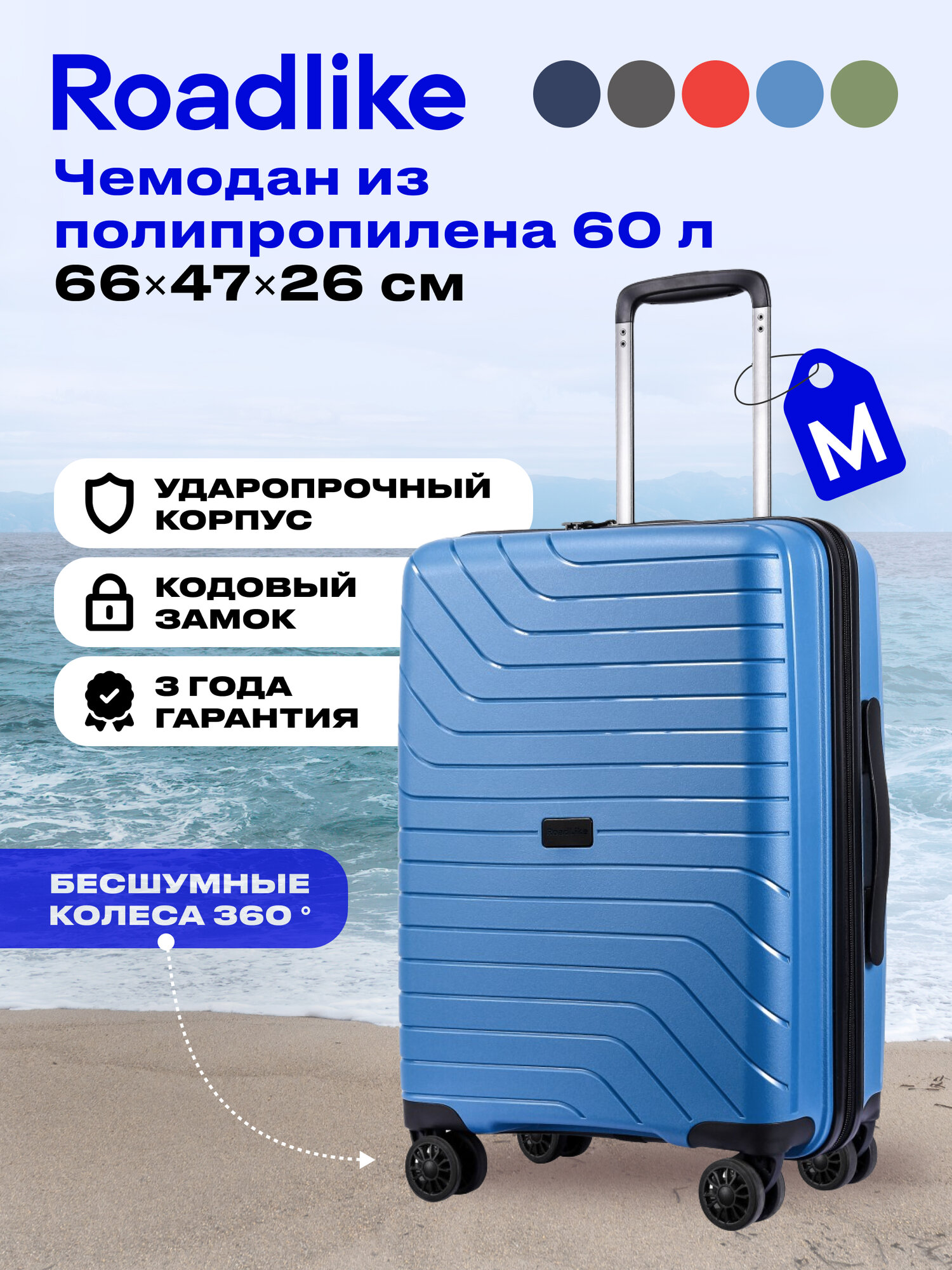 Чемодан ROADLIKE Way M, Голубой