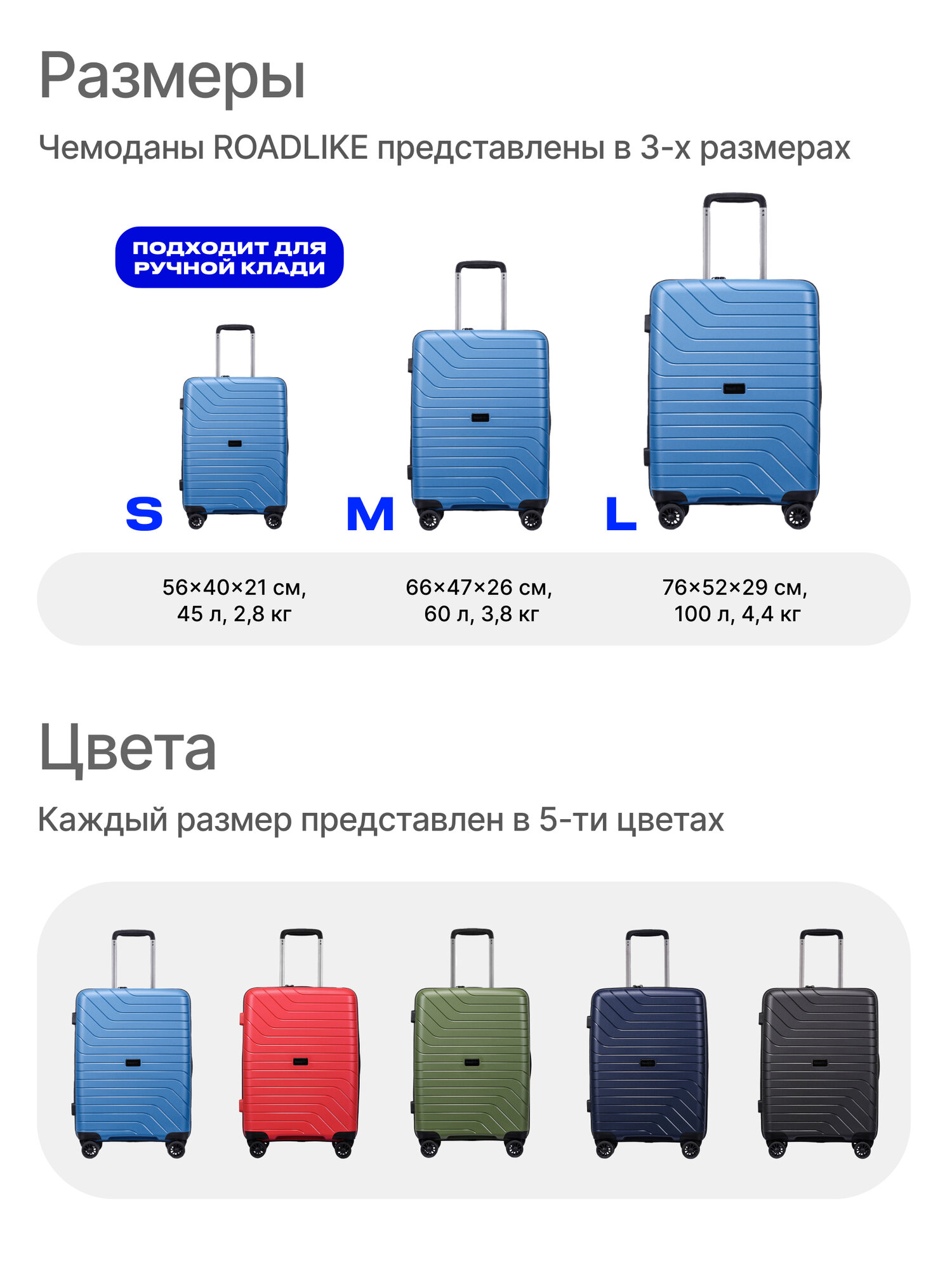 Чемодан RoadLike Way L, Голубой .