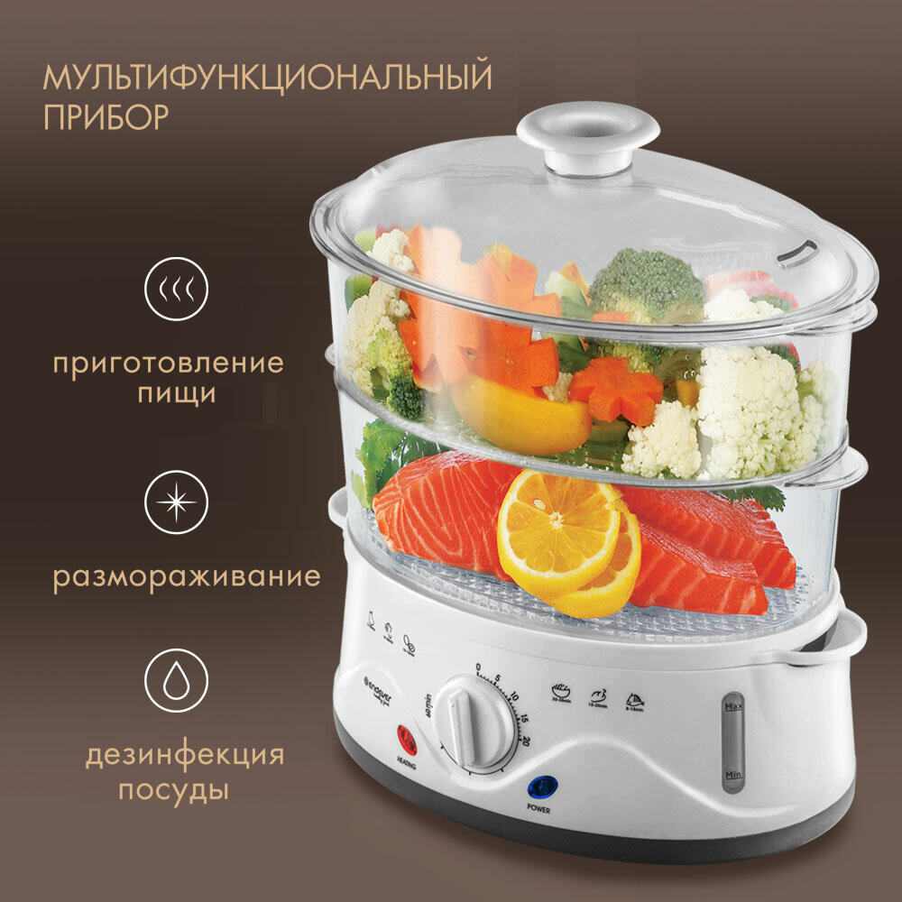 Электрическая пароварка, 2 корзины для приготовления пара, универсальная, 1000 Вт