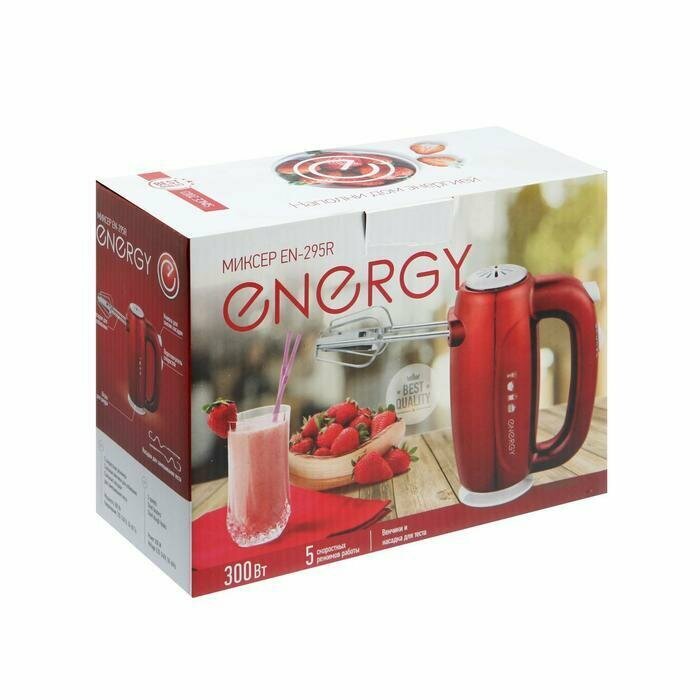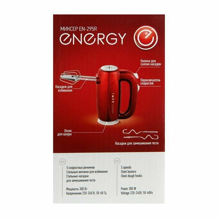 Миксер ENERGY EN-295R, ручной, 300 Вт, 5 скоростей, красный