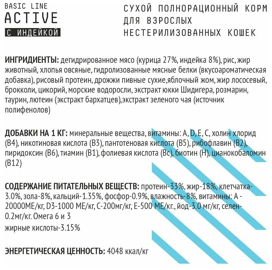AJO ACTIVE полнорационный корм для взрослых активных кошек с индейкой, 1,5 кг