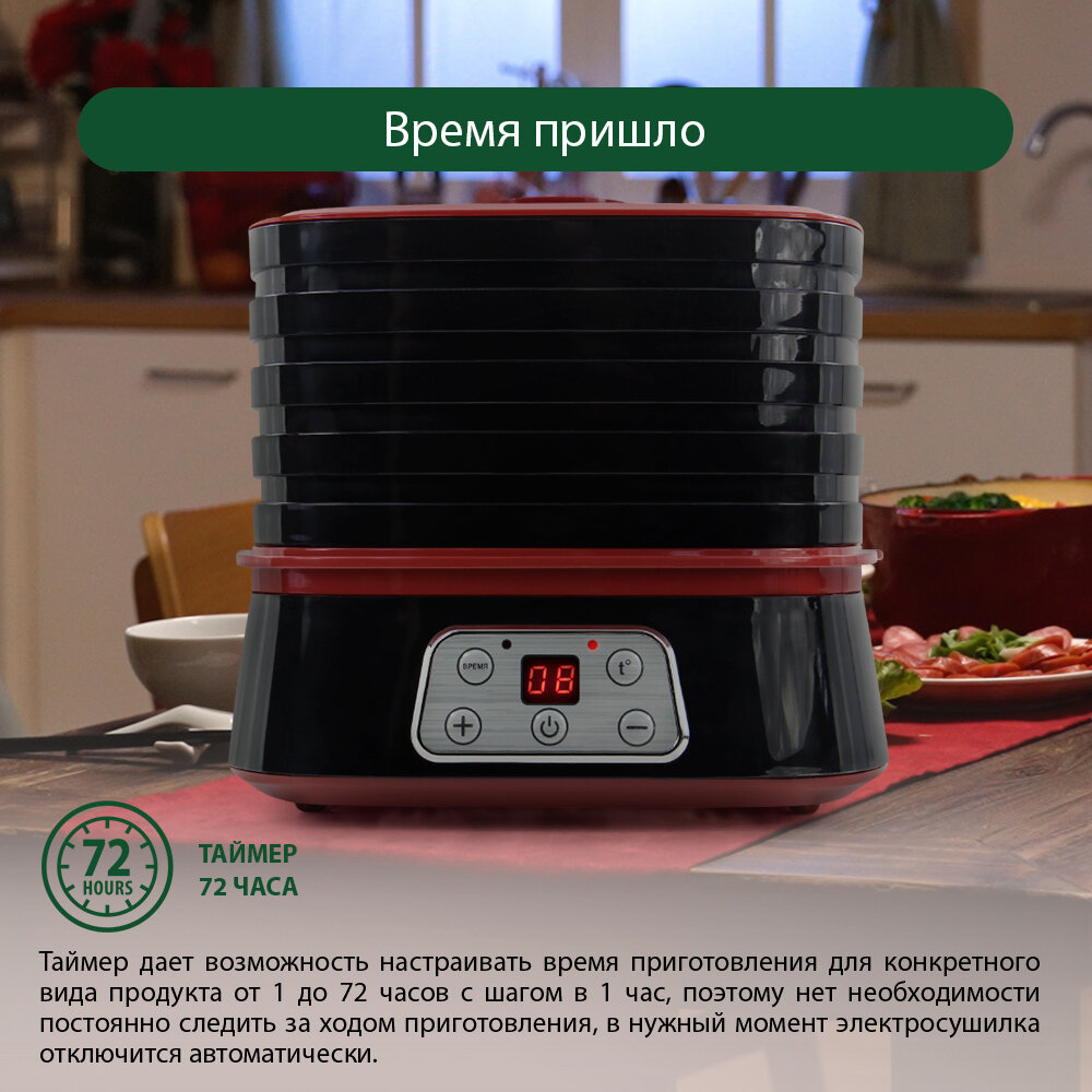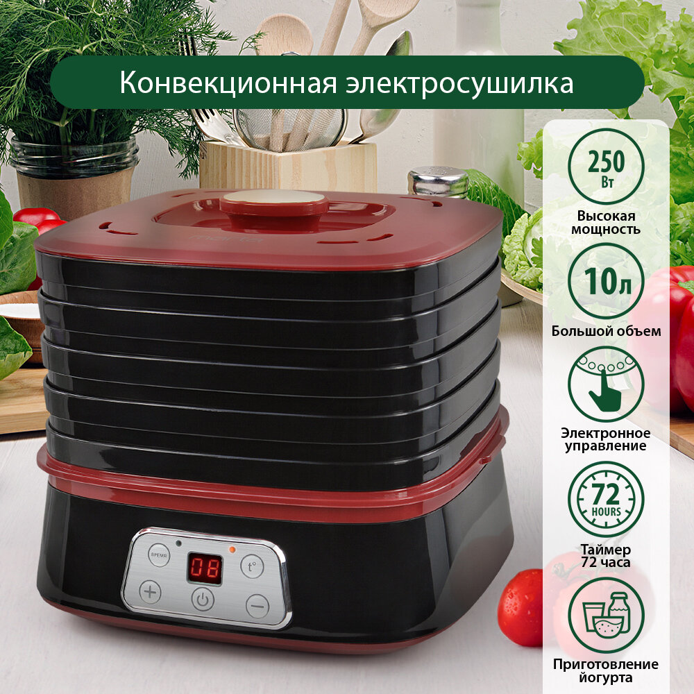 MARTA MT-1947 5 поддонов черный/красный сушилка д/фруктов,овощей интересное: