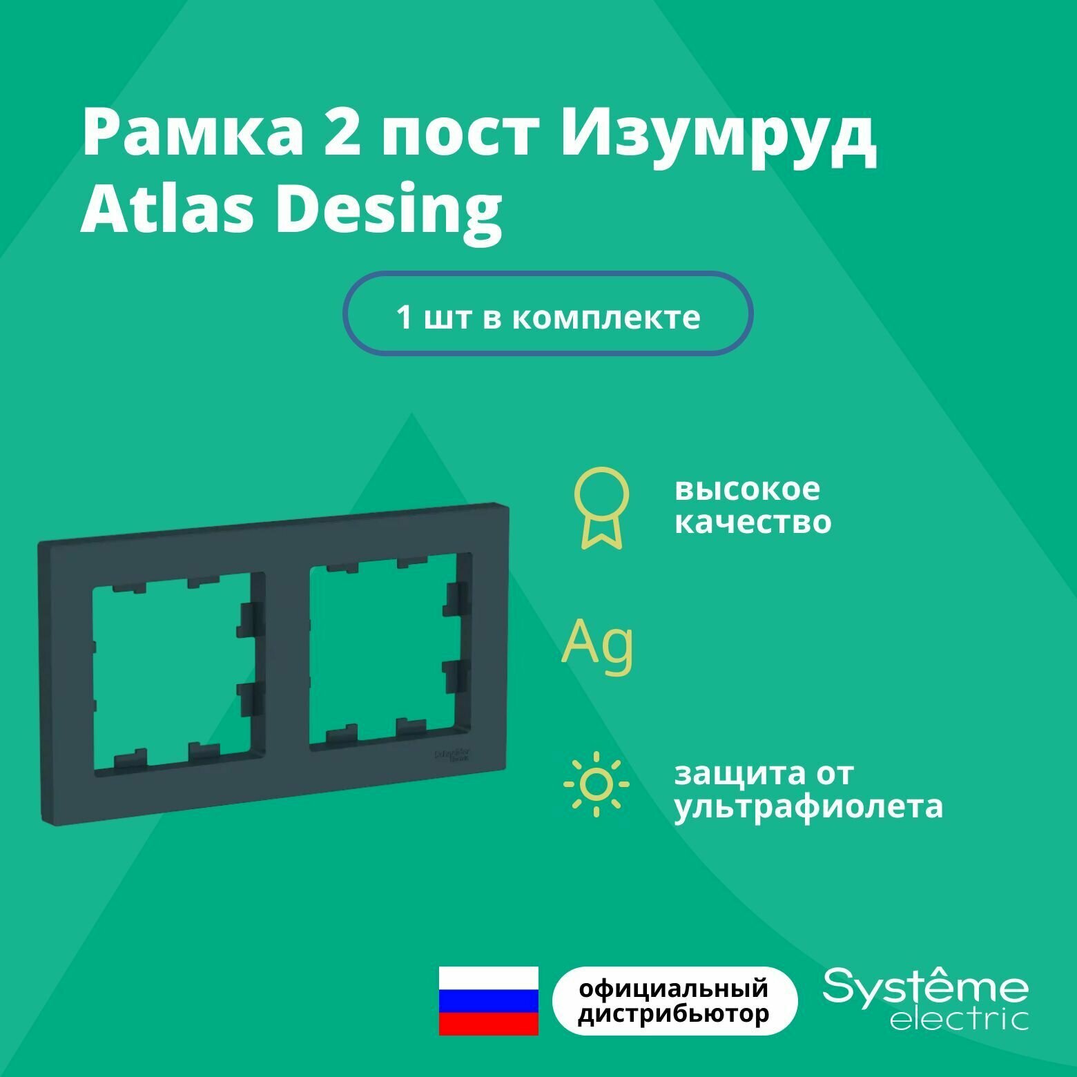 Купить Рамка Systeme Electric (schneider Electric) SCHNEIDER ELECTRIC ATLASDESIGN, изумруд 2-постовая, ATN000802