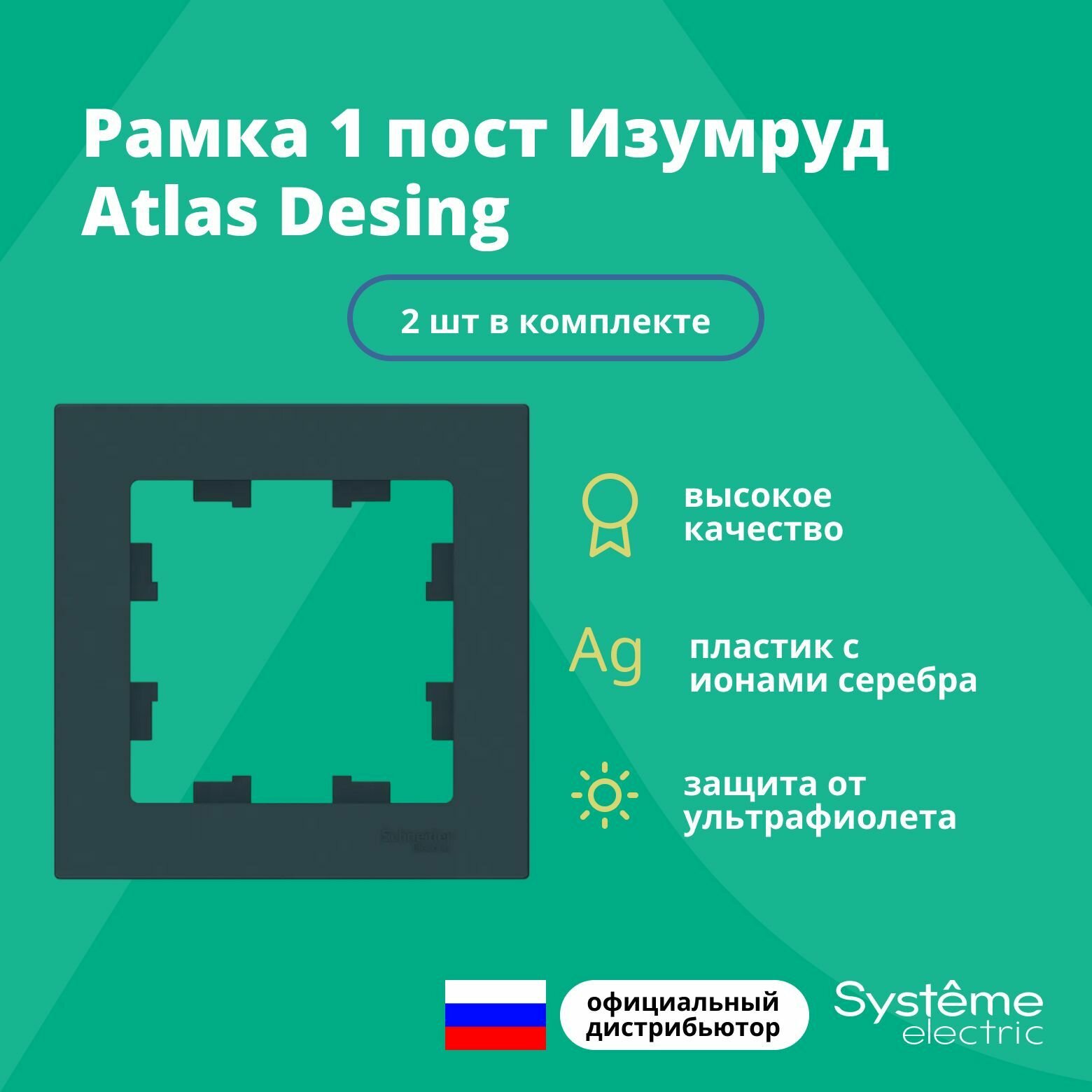 СохранитьРамка для розетки выключателя одинарная Schneider Electric (Systeme Electric) Atlas Design Антибактериальное покрытие Изумруд ATN000801 2шт интересное: