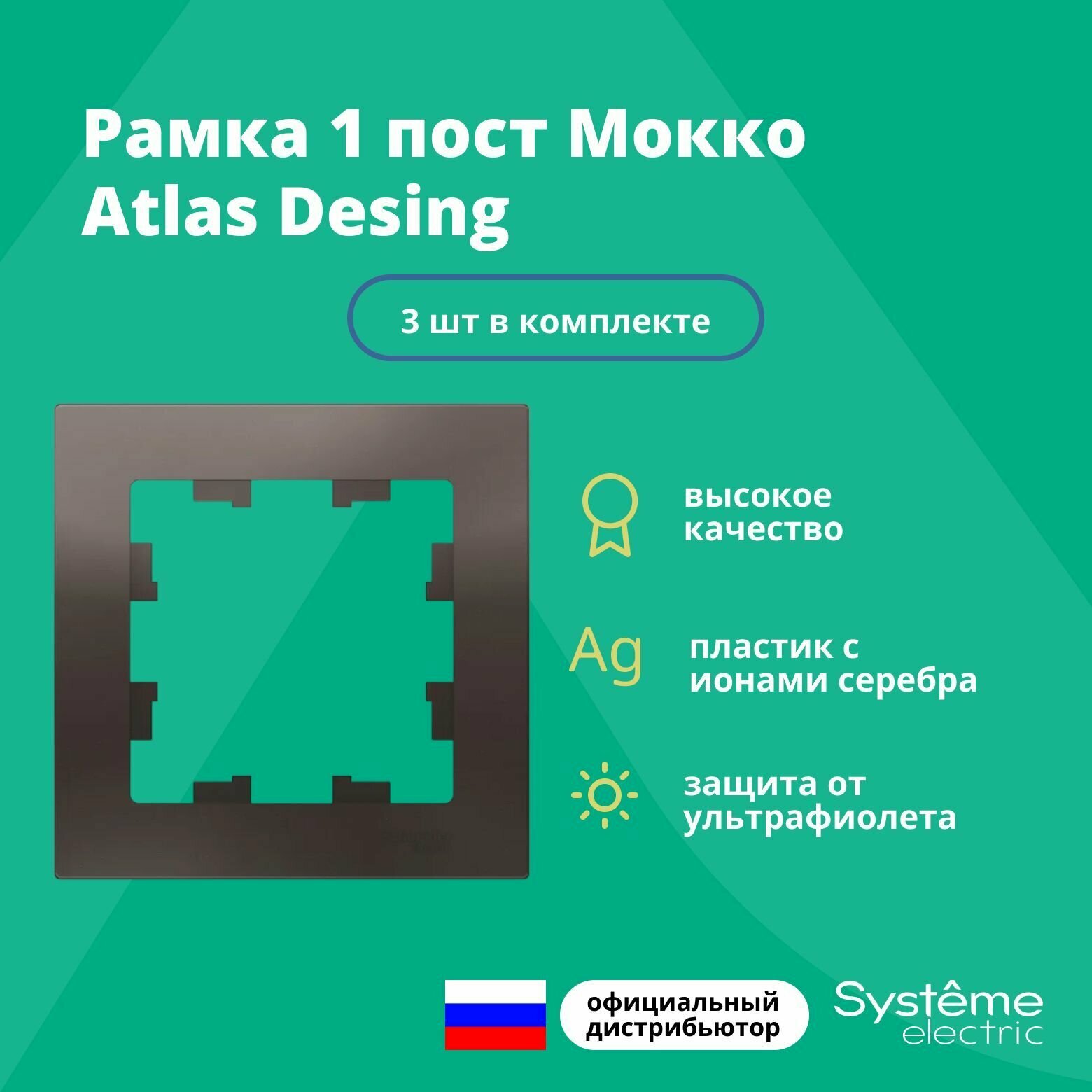 Купить Рамка для розетки выключателя одинарная Schneider Electric (Systeme Electric) Atlas Design Антибактериальное покрытие Мокко ATN000601 3шт