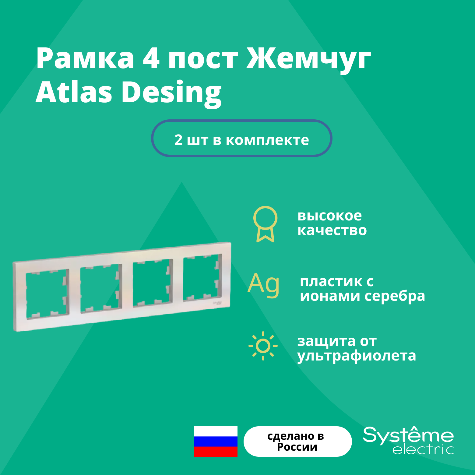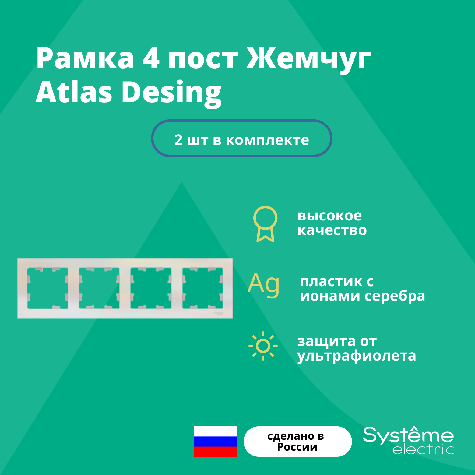 Купить Рамка для розетки выключателя четверная Schneider Electric (Systeme Electric) Atlas Design Антибактериальное покрытие жемчуг ATN000404 2шт