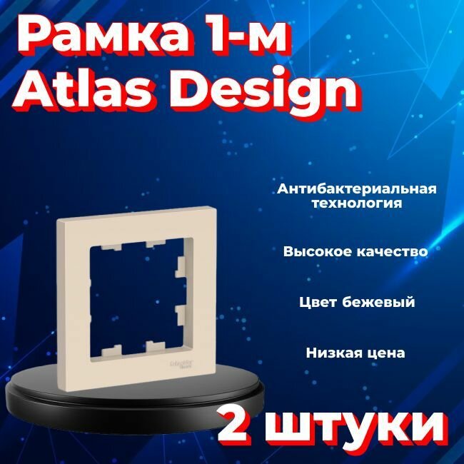Купить Рамка для розетки выключателя одинарная Schneider Electric (Systeme Electric) Atlas Design Антибактериальное покрытие бежевый ATN000201 2шт