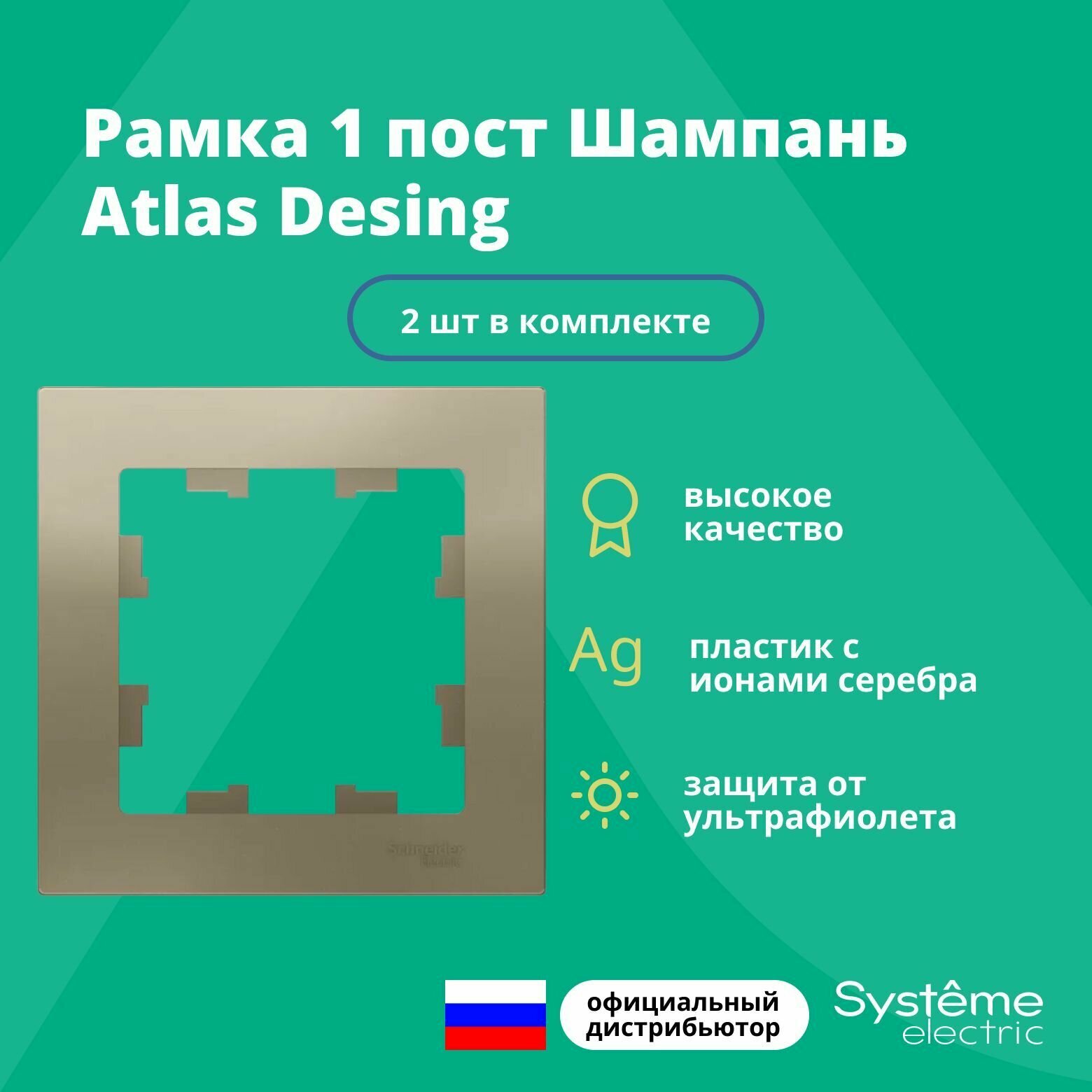 Купить Рамка для розетки выключателя одинарная Schneider Electric (Systeme Electric) Atlas Design Антибактериальное покрытие шампань ATN000501 2шт