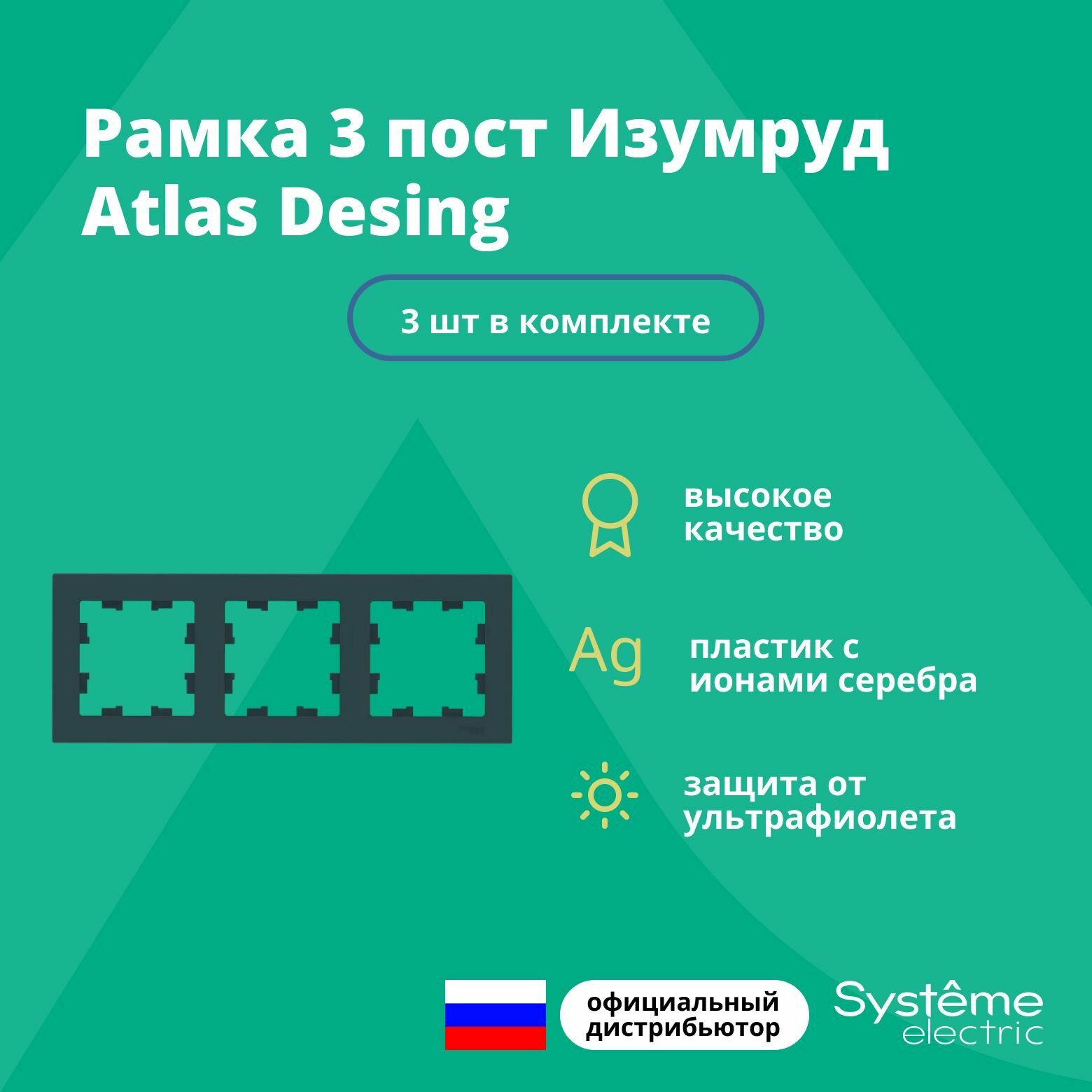 СохранитьРамка трехпостовая ATLASDESIGN универсальная изумруд ATN000803 Schneider Electric (3шт.) интересное:
