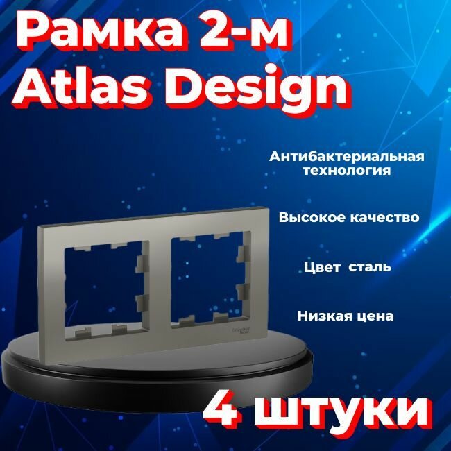 Купить Рамка двойная для розеток и выключателей Schneider Electric (Systeme Electric) Atlas Design сталь ATN000902 - 4 шт.
