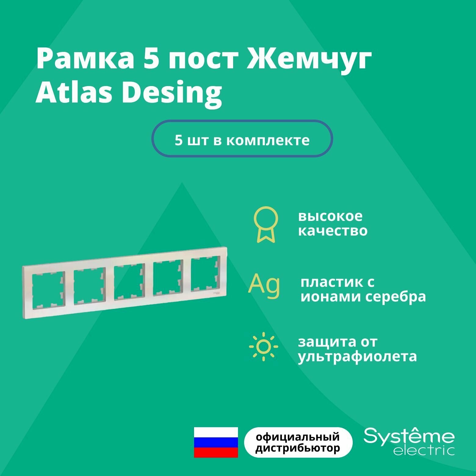 СохранитьРамка 5-постовая для розеток и выключателей Жемчуг AtlasDesign Schneider Electric ATN000405, комплект 5 шт интересное: