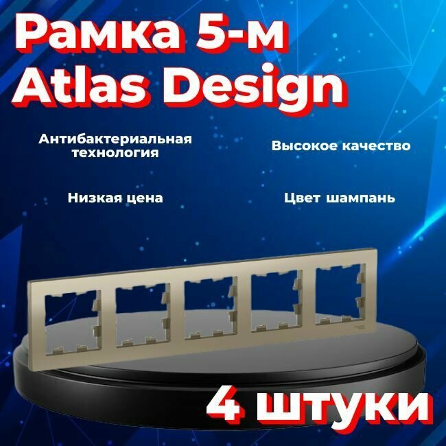 Купить Рамка пятиместная для розеток и выключателей Schneider Electric (Systeme Electric) Atlas Design шампань ATN000505 - 4 шт.