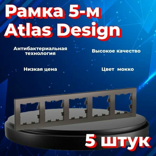 Рамка для розеток и выключателей пятипостовая (Мокко), Schneider Electric AtlasDesign (комплект 3шт)