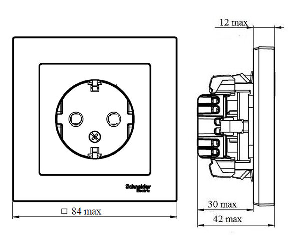 Розетка с заземлением, со шторками, в сборе, карбон Schneider Electric AtlasDesign (комплект 2шт)