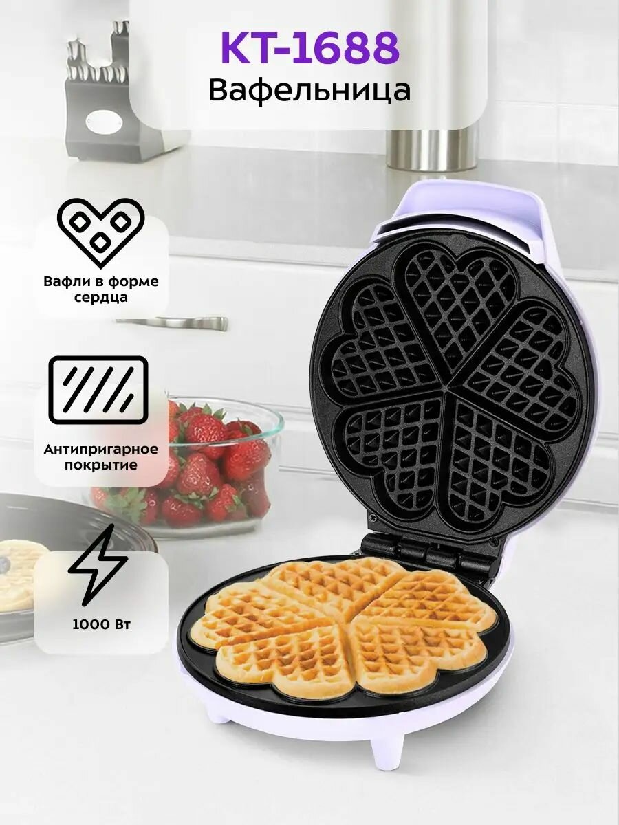 Вафельница электрическая Kitfort КТ-1688, 950 Вт, бельгийские, фиолетовая