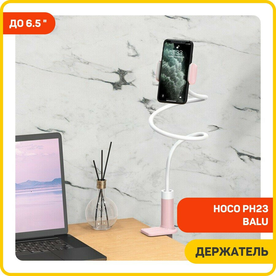 Держатель настольный HOCO, PH23, Balu, для смартфона 4,5"-6,5", силикон, металл, гибкая нога 70 см, цвет: розовый, белая вставка
