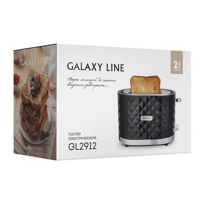 Тостер мощность Galaxy LINE GL 2912 черный (1200 Вт, функция автоматического центрирования тоста)