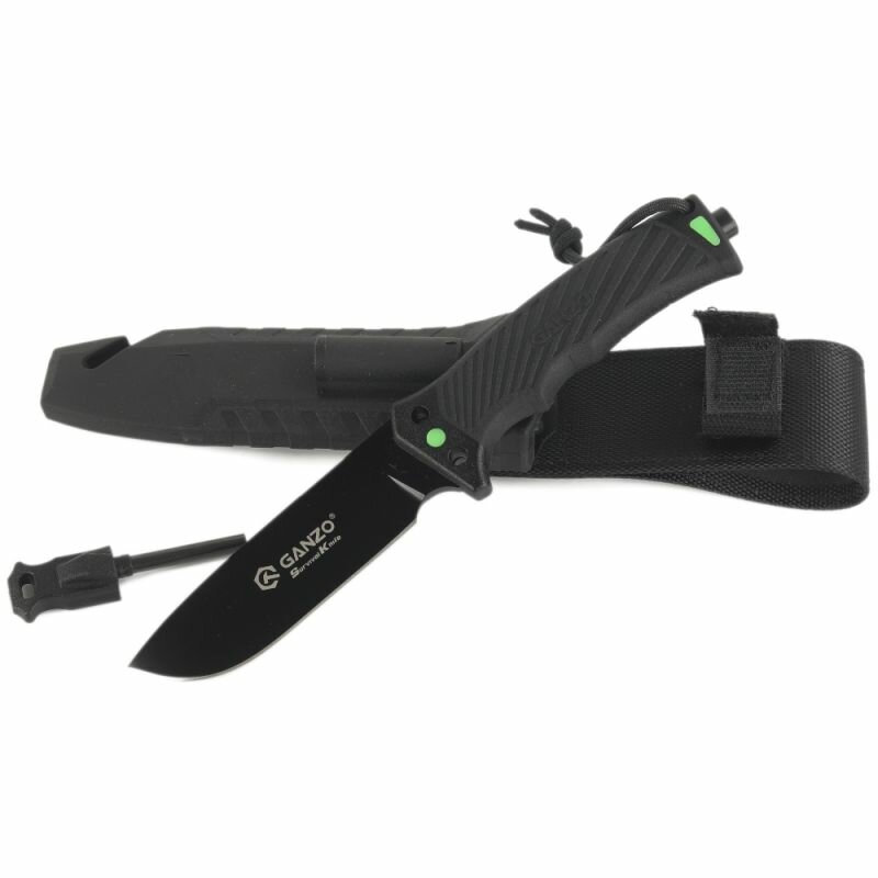 Нож туристический "Ganzo", длина 243 мм, сталь 8CR13, черный, с паракордом, в ножнах