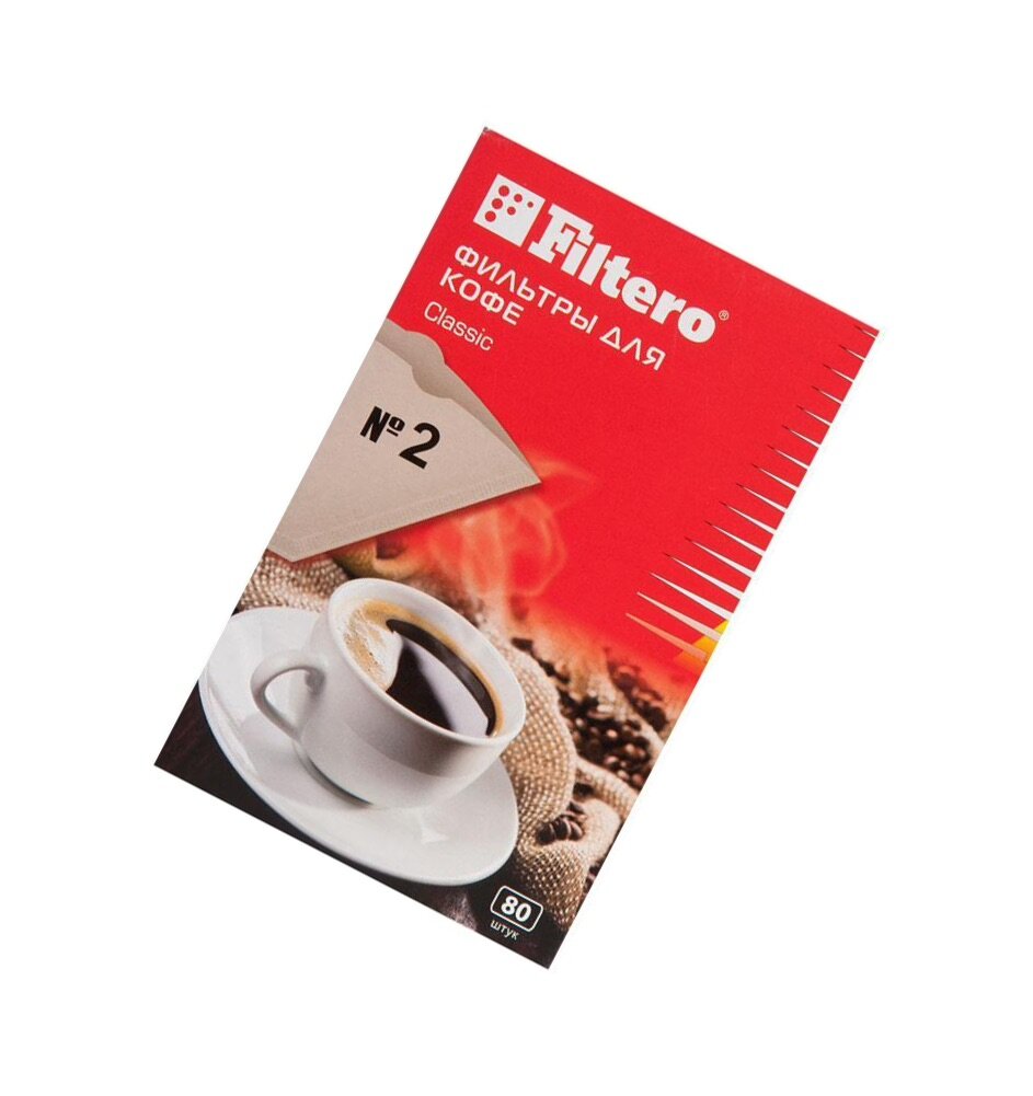 Фильтры для кофе Filtero №2, для кофеварок капельного типа, бумажные, 80 шт, коричневый [№2/80]