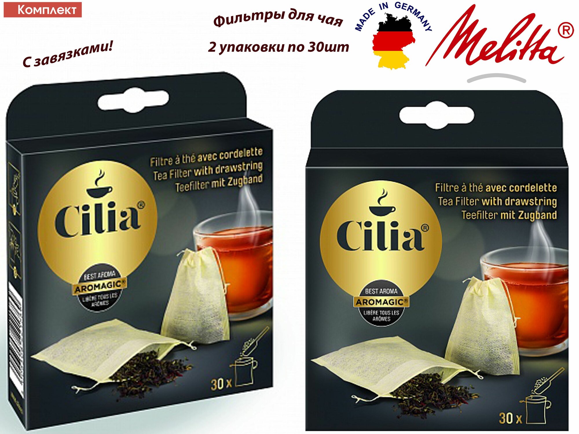 Комплект: Фильтры для чая Cilia Melitta с завязками, 2 упаковки по 30 шт интересное: