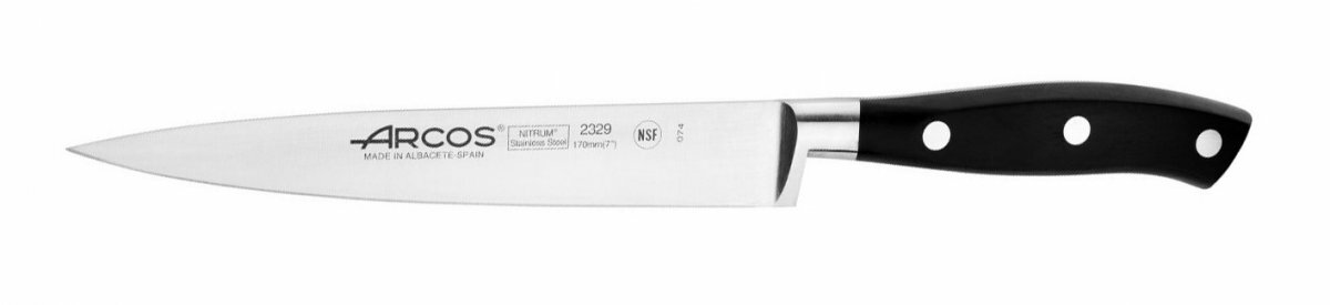 Нож филейный из кованой высокоуглеродистой нержавеющей стали, 17 см, пластиковая рукоять, черный, серия Riviera, Arcos, 2329