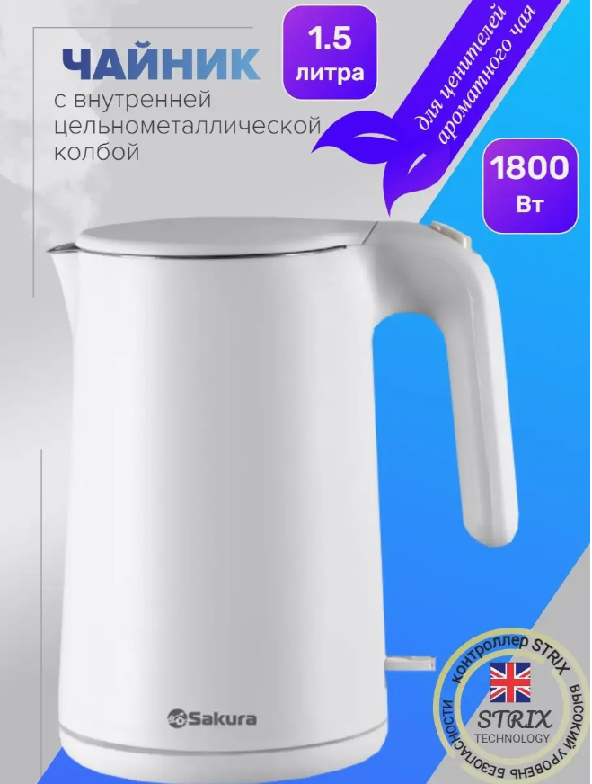 СохранитьЧайник электрический Sakura SA-2169W Premium жемчужный 1.5л интересное: