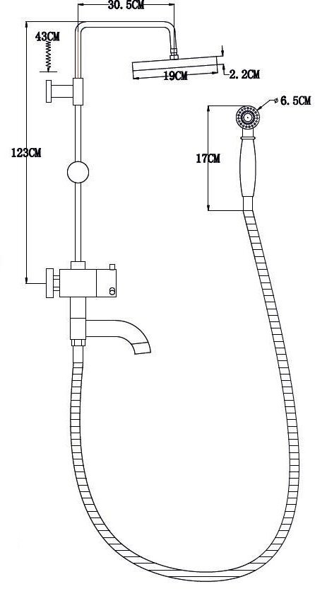 | Дополнительная информация | высота стойки для душа: 1230 мм; диаметр душевой лейки: 65 мм; диаметр верхнего душа: 190 мм |