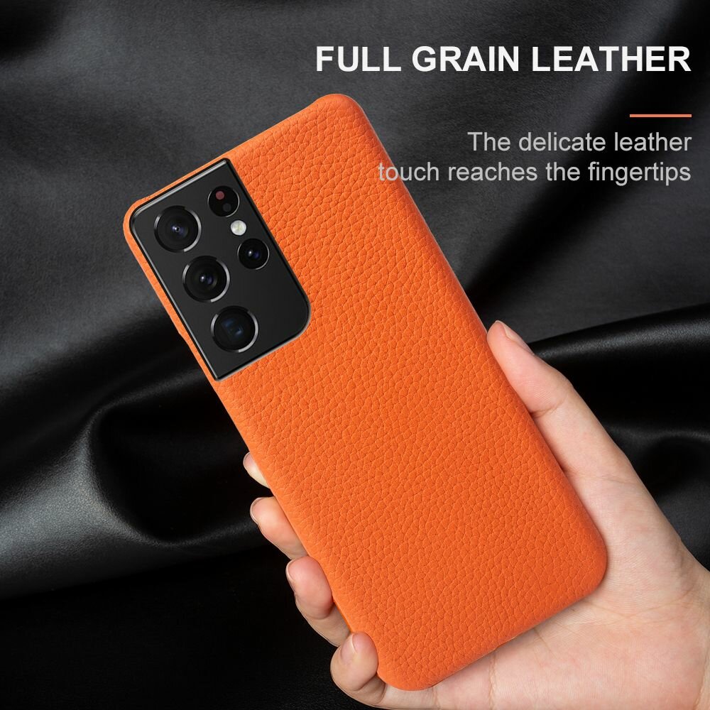 Купить Кожаный чехол накладка Melkco для Samsung Galaxy S21 Ultra - Snap Cover, оранжевый